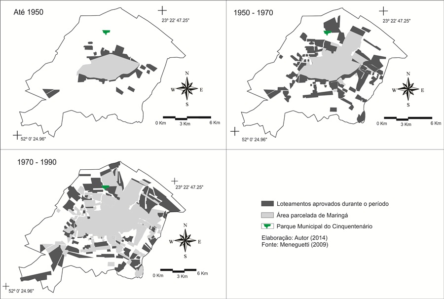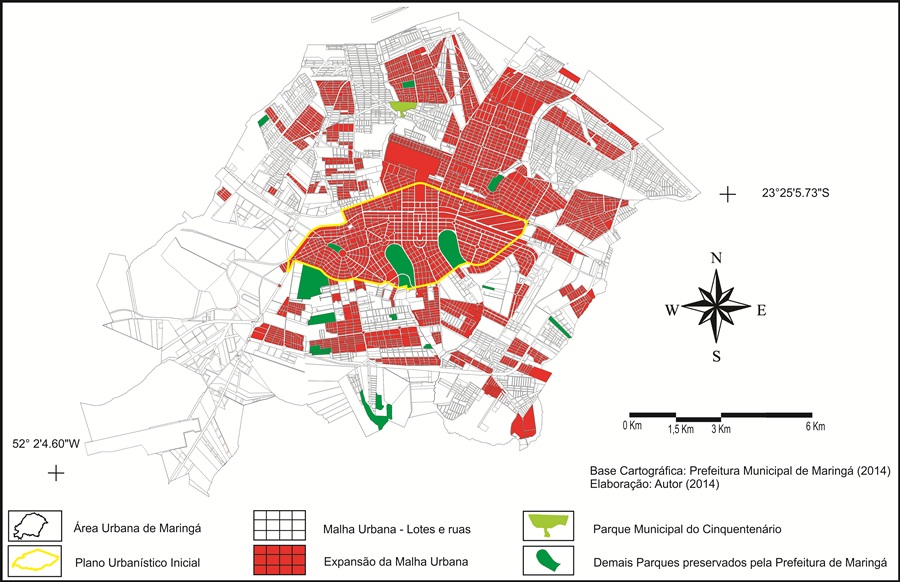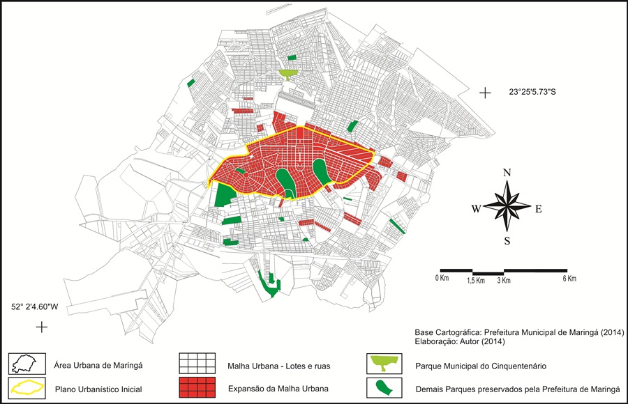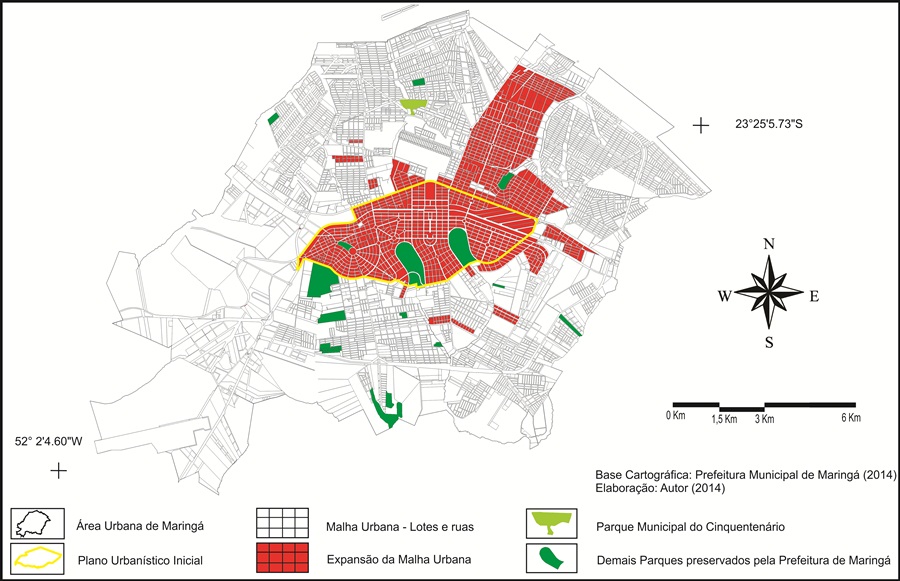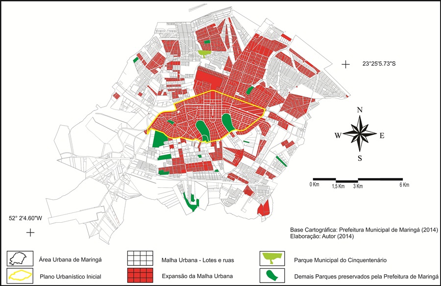 Análise multitemporal da expansão urbana de Maringá-PR durante o período de 1947 a 2014 envolvendo o Parque Municipal do Cinquentenário e as principais áreas verdes do município / Multitemporal analysis of urban expansion Maringá – PR during (...)
