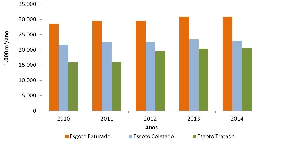 This paper reason to discuss the sewerage by the official of the Companhia de Saneamento de Minas Gerais (COPASA), service provider responsible for providing treated water, as well as collect and treat sewage, for only then empties it in watercourses water Contagem. Contagem is an important municipality that make up the Região Metropolitana de Belo Horizonte (RMBH), which has been showing continuous population growth rates in recent years, with the expansion of the urban fabric is also happening clandestinely, thus promoting several impacts environmental in the city, which has more than half of the municipality, an Área de Proteção Ambiental (APA), which has in its interior a public water supply, the dam Várzea das Flores. Were analyzed, tabulated and graphed, data of the Sistema Nacional de Informações sobre Saneamento (SNIS) between the years 2010 and 2014, showing that the city of Contagem need considerable advances in sewerage, so there is a reduction in environmental impacts, and improving water quality in rivers and municipal dam.