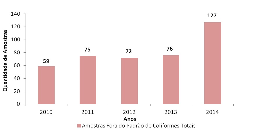 - Amostras fora do padrão para a presença de Coliformes Totais Contagem/MG