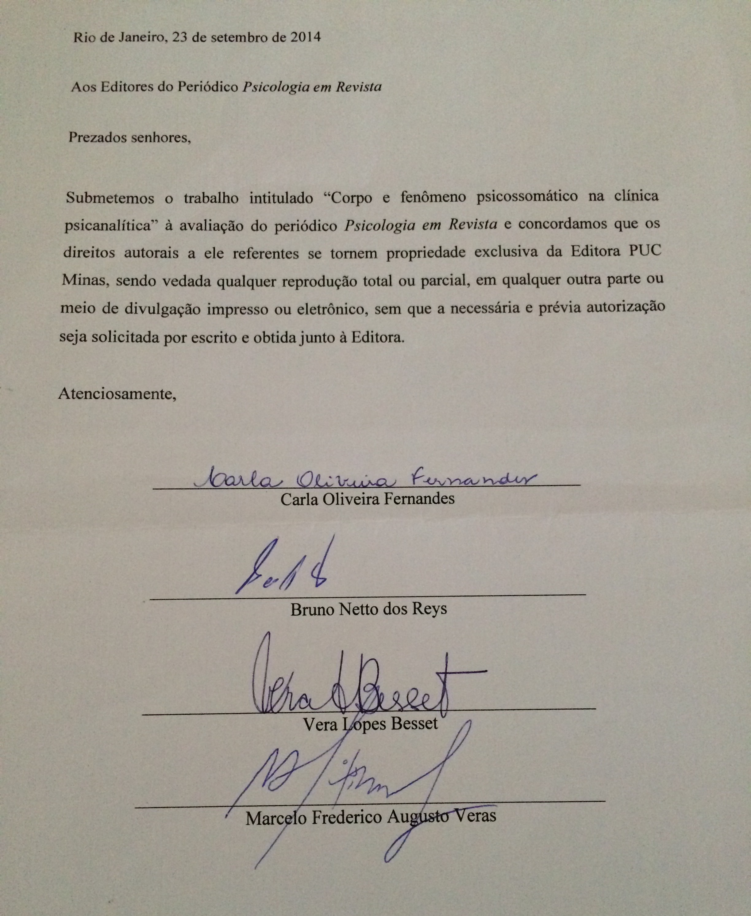 Encaminhamos à Revista Psicologia em Revista para apreciação e possível publicação, o texto intitulado XXXXXX.