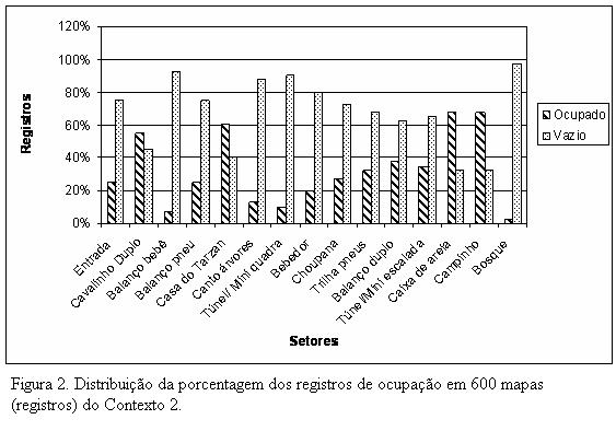 The purpose of this study was to identify the characteristics of open spaces in day-care centers, relating physical aspects with their users’ games through the technique of behavioral mapping. The study was conducted in two educational contexts of the city of Florianopolis, Santa Catarina State, in which participants, children aged between 3 and 5, were observed during recreation. Data analysis showed a preference for certain kinds of equipment. In both contexts girls liked better Swing and Sandbox, while boys preferred multiple equipment (Firemen and Tarzan’s House). The kinds of equipment that had significant occupation were those that allowed greater playing diversity (Make-believe). We concluded that the physical properties of spaces allow predictability concerning some games and continuity to certain biological, social and cultural mechanisms experienced by their users.