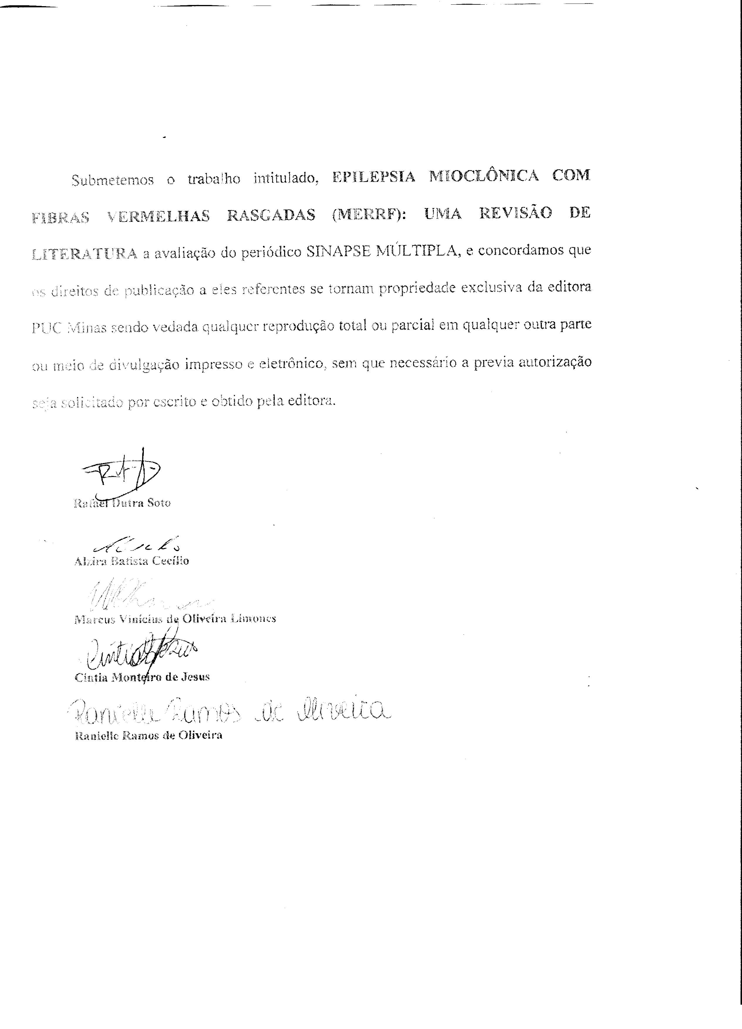 Submeto (emos) o trabalho intitulado “XXXXXXXX" à avaliação do periódico SINAPSE MÚLTIPLA, e concordo(amos) em compartilhar os direitos autorais dele referentes com a Editora PUC Minas, sendo que seu conteúdo ou parte do mesmo poderá ser copiado, distribuído, editado, remixado e utilizado para criar outros trabalhos, nos termos da legislação reguladora dos direitos autorais em vigor, em qualquer meio de divulgação, desde que realizado o necessário reconhecimento da autoria e da publicação inicial na Sinapse Múltipla.